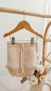 Talle 2 (9M): Largo 35 cm, tiro 27 cm, cintura frente lineal 24 cm, contorno 48 cm
