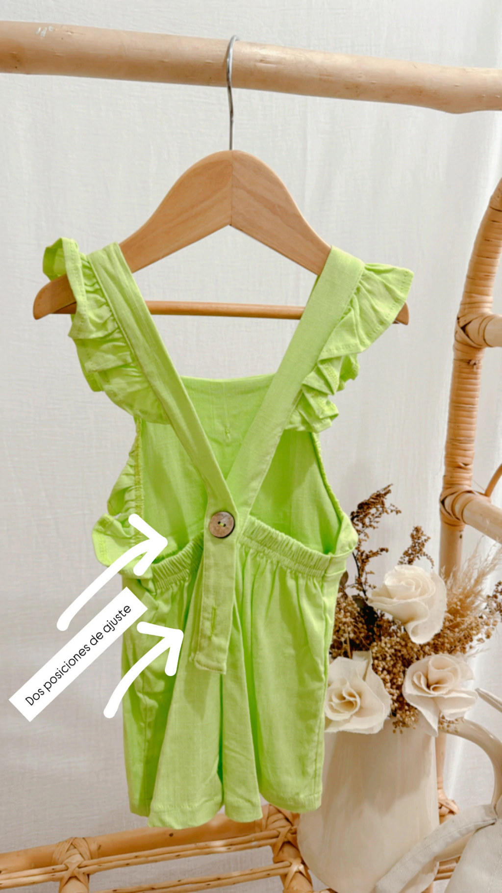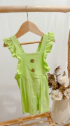 jardinero confeccionado en lino, una tela muy fresca y versatil, con detalle de volados y espalda cruzada